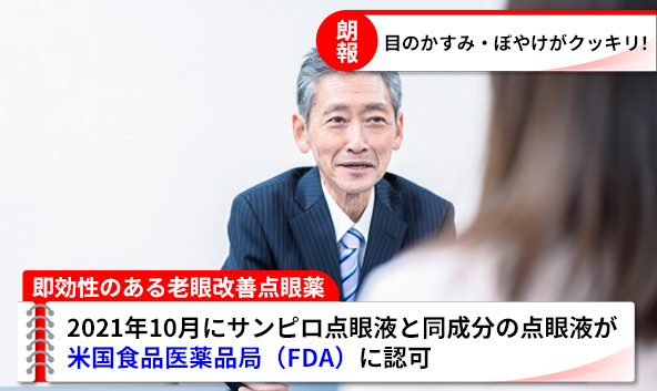 | 未承認医薬品であることの明示 | サンピロ点眼液は日本において緑内障、診断または治療を目的とする縮瞳のお薬として厚生労働省に承認されています。 老眼治療目的としては未承認のお薬ととなります。 |